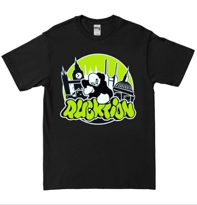 Two colour Rucktion logo, high quality white and green screenprint on Gildan Hammer blank.